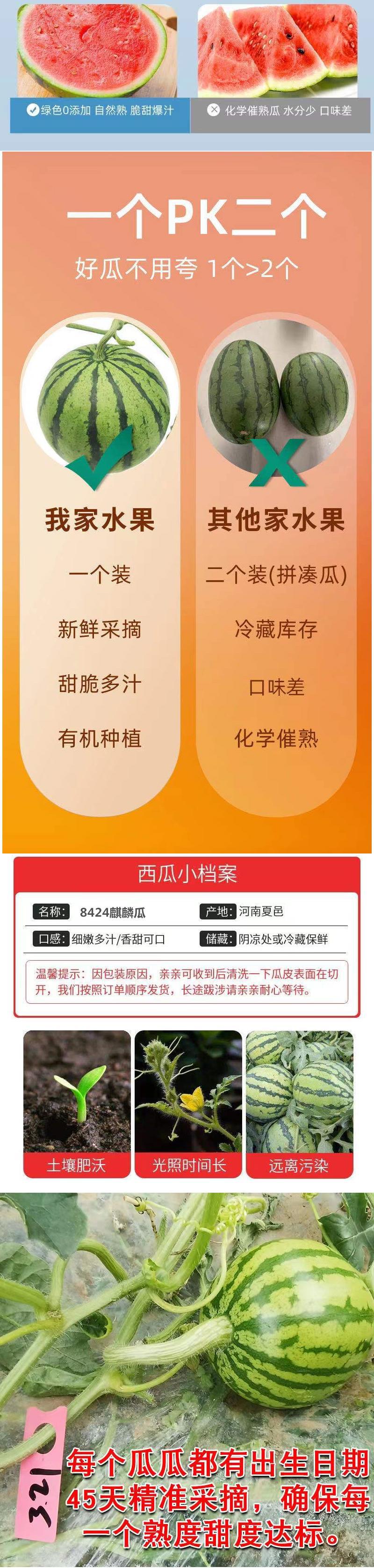 西瓜有籽水果新鲜冰糖麒麟8424皮薄超甜现摘现发当季3--8斤装整箱