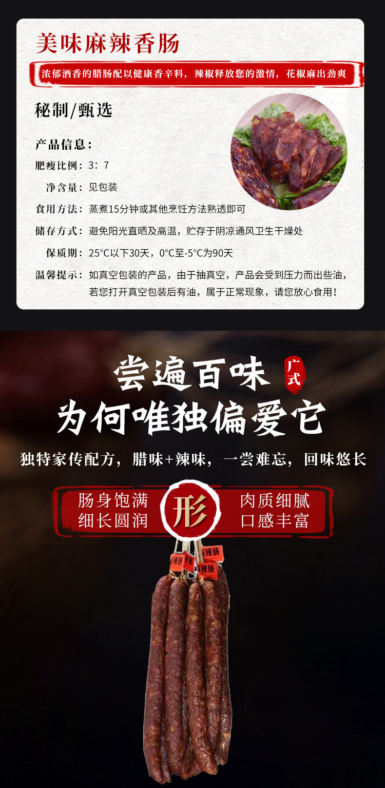 广式麻辣香肠广东特产广式腊肠煲仔饭商用香甜风味餐饮香肠