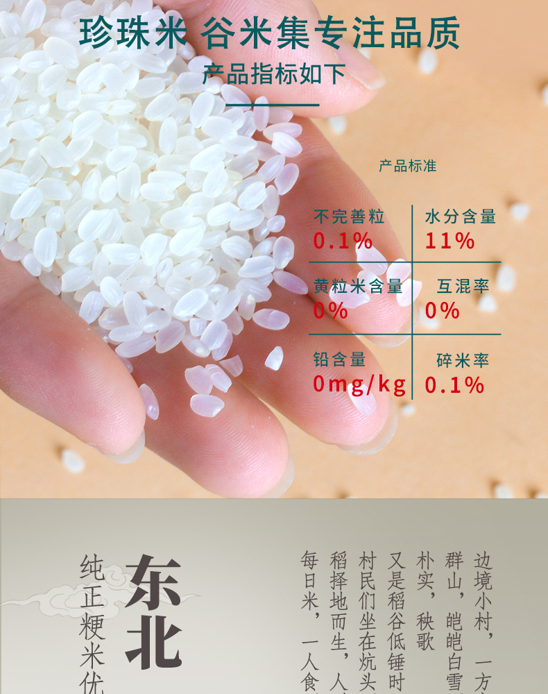 谷米集珍珠大米2.5kg/袋新鲜现磨寒地珍珠米真空包装农家煮粥粳米