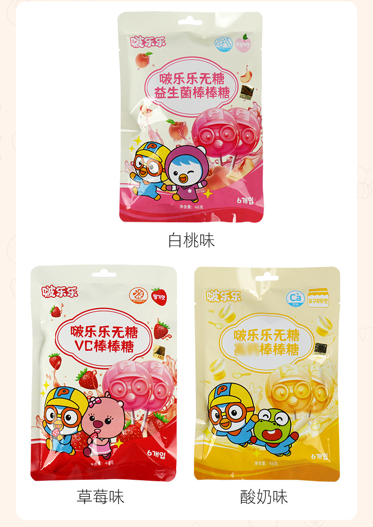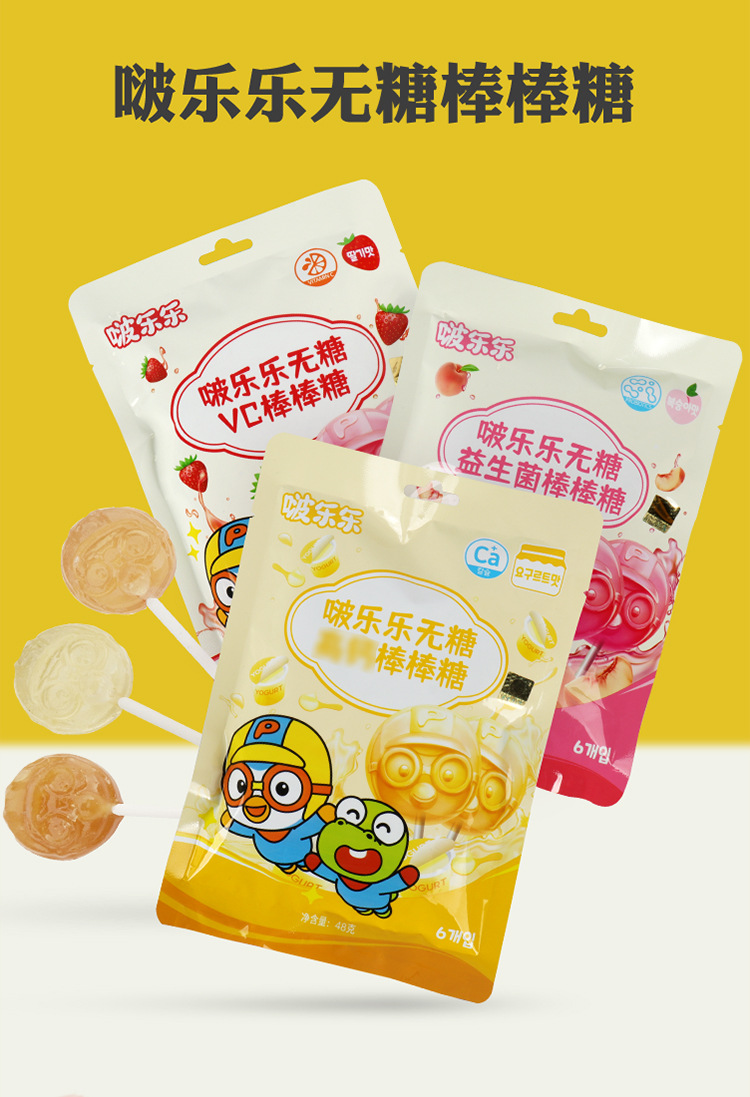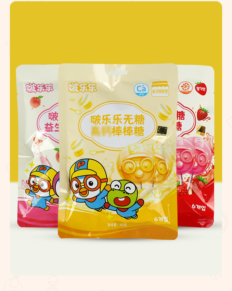 啵乐乐pororo无糖棒棒糖48g糖果零食水果酸奶味独立包装硬糖