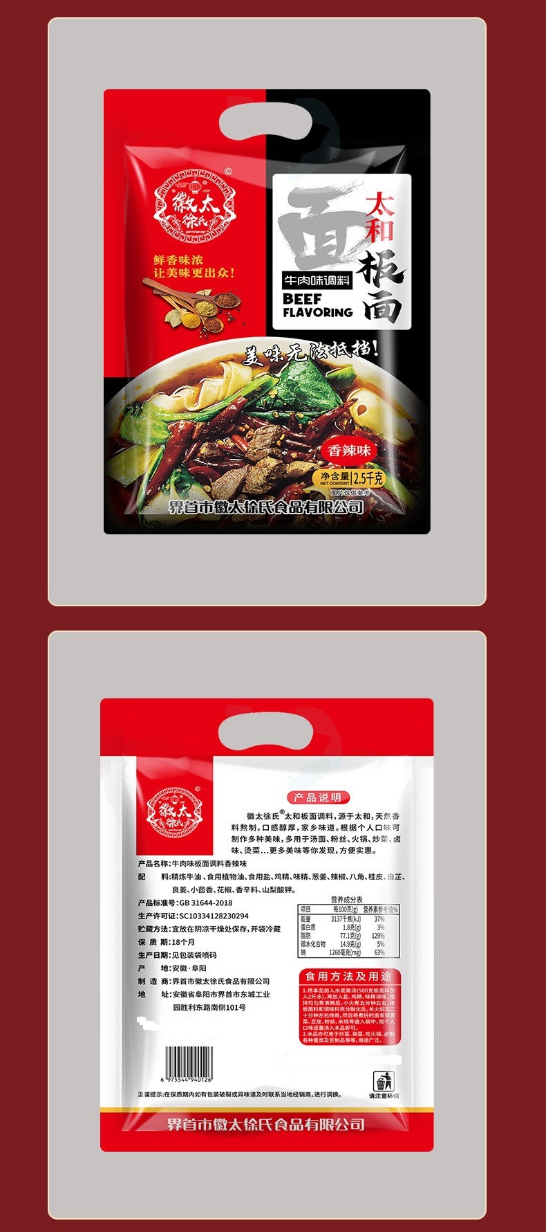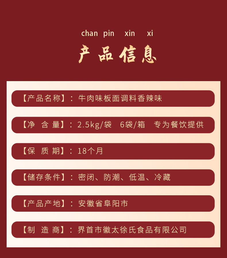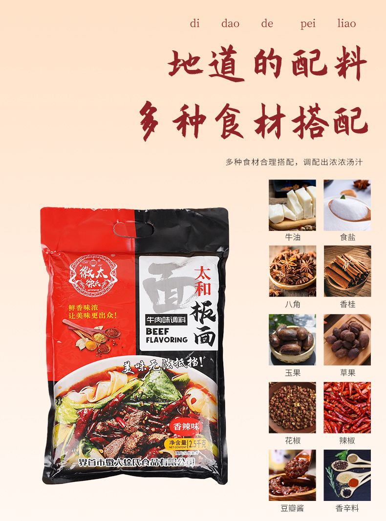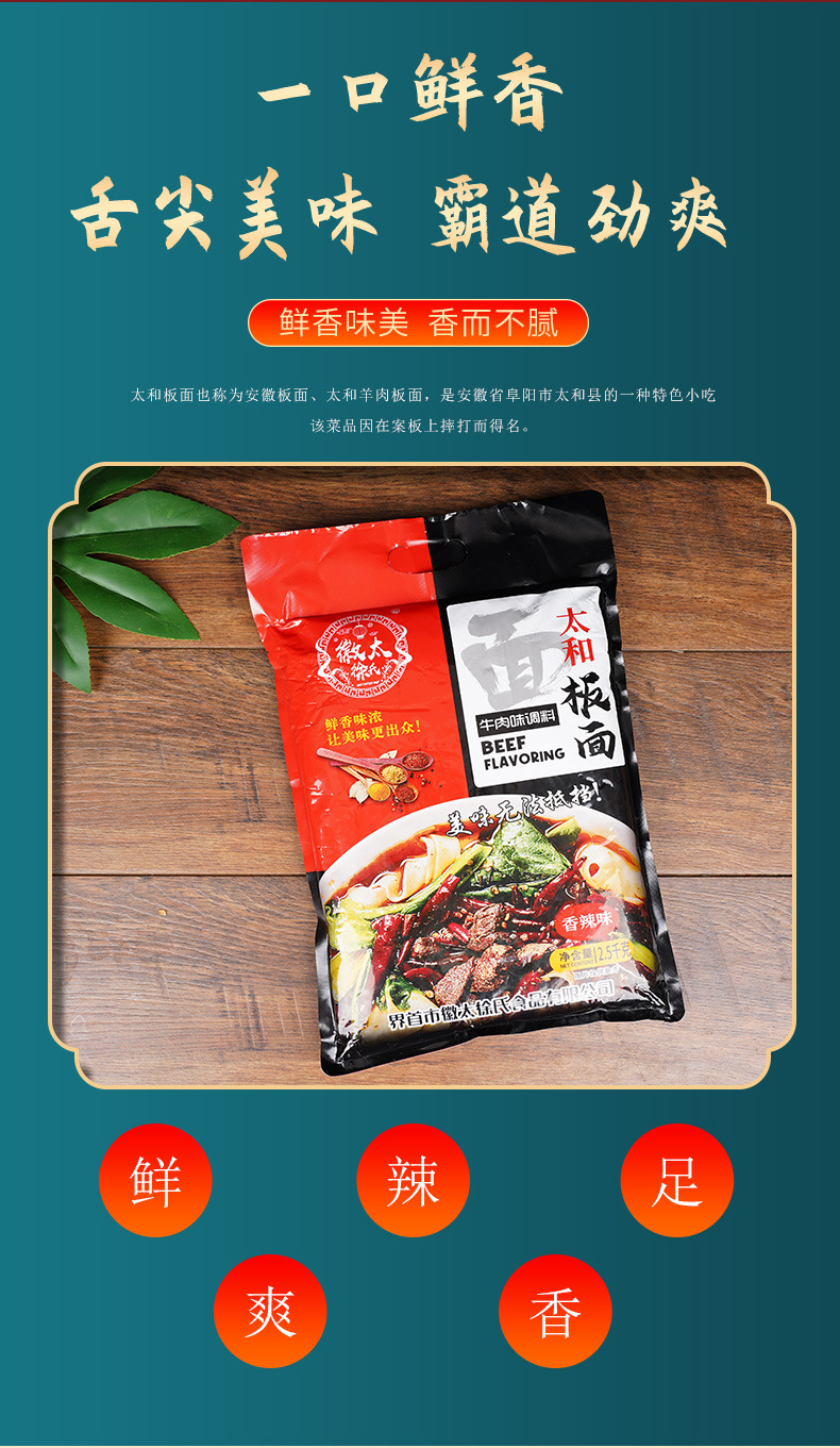 整箱批发安徽太和牛肉味板面调料香辣味2.5kg/袋大包专为餐饮提供
