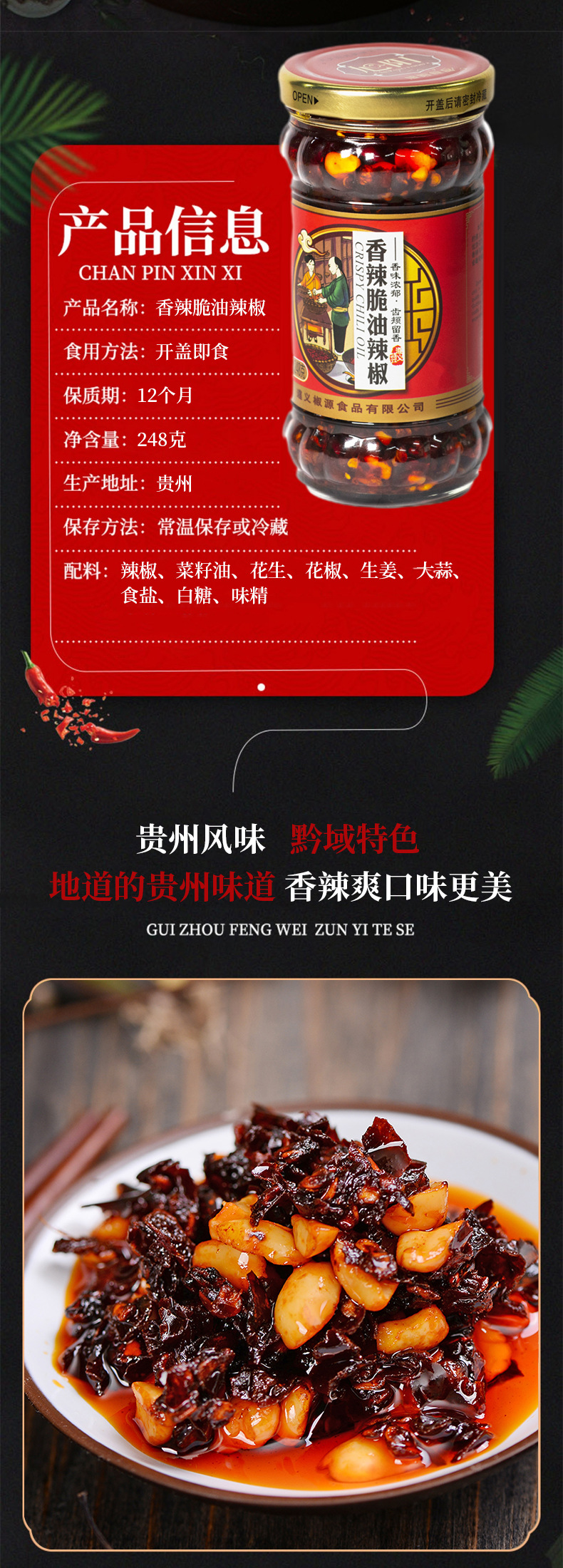 贵州特产辣椒酱248g瓶装香辣脆油辣椒拌饭调味品风味辣椒酱批发