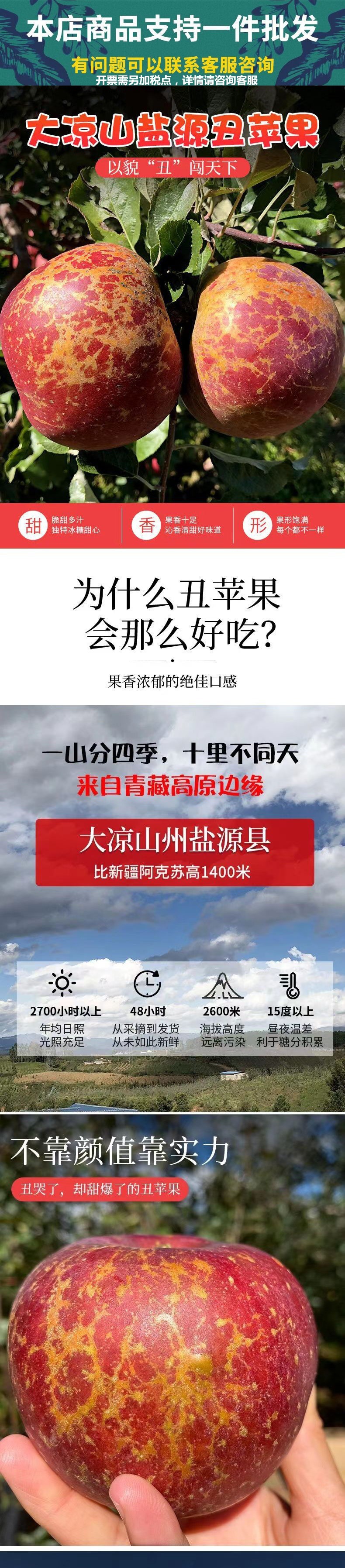 四川大凉山丑苹果冰糖心新鲜水果当季整箱10斤盐源红富士整箱批发