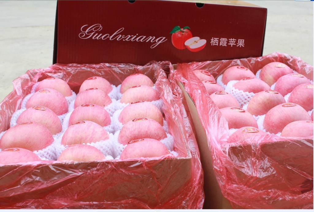 栖霞市益佳果品专业合作社,位于栖霞中部的大柳家。近些年来,多户联合,科学管理,用无公害农药,追施有机肥为主,套优质果袋,地覆盖薄膜,苹果必须到成熟期采摘,所以,红富士苹果色泽鲜艳红润,果香浓郁,甜脆适口,果汁85%以上,含糖量14—20%左右。苹果中含有丰富的钙、锌、钾、维生素A.C.E及人体所需的各种微量元素,经常食用可提高人体免疫功能,帮助消化,生津止渴,养颜润肤,延年益寿。一天一苹果,医生远离我。