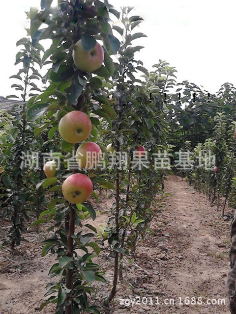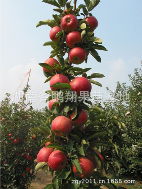 2、高度集约化栽培,大田1000株/亩(密度是常规苹果品种的10倍)。大田树体高度可达3.5米,单株每米4年左右产果15市斤左右,4-6年成龄园平均亩产2,7-3,2万斤。