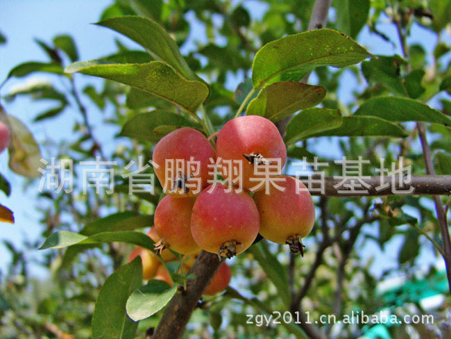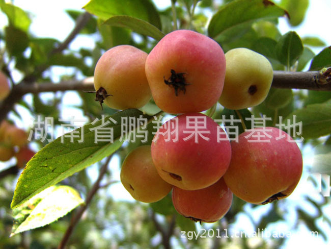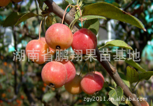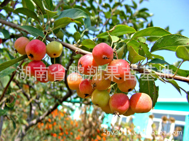 长寿果,属蔷薇科,苹果属植物。长寿果株高40厘米—60厘米,枝叶短状,花繁果多,适宜作盆景栽培。该盆景用蒙山甜茶做砧木,春天播种,秋天嫁接,从小苗到成型结果大约3年—5年。4月份开花时,花簇状呈粉红色,花期20余天,繁花挂满枝头,鲜花缤纷,令人驻足。盆株无论大小龄都可挂果,小株可挂几十个,大株可挂果600个—1000个,果实圆球形,大小如葡萄,小巧玲珑,光洁亮丽,果实先青后红,由于成熟期不一致,同株果实相映成趣,色彩缤纷。该果经冬不落,一直挂至次年,观果期之长。